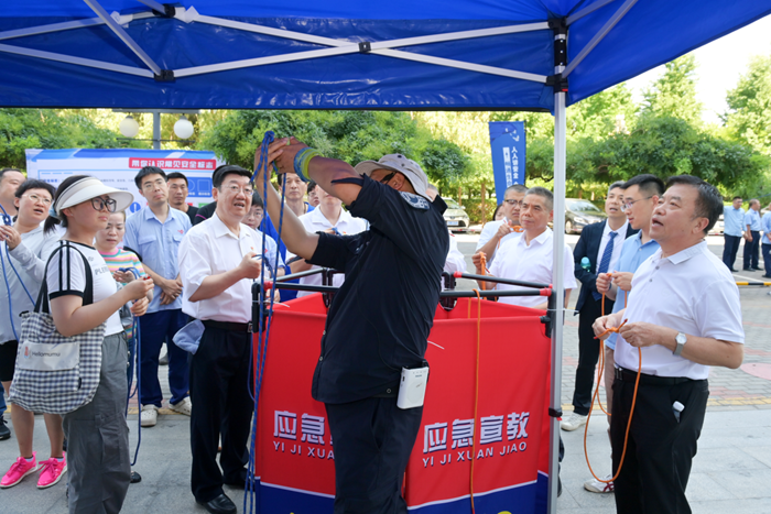 電動(dòng)自行車電池的穿刺實(shí)驗(yàn),讓大家實(shí)際感受到了電池在擊穿狀態(tài)下的危險(xiǎn)程度,提示了電動(dòng)自行車應(yīng)規(guī)范購(gòu)置、不私自改裝,電瓶及電動(dòng)自行車不進(jìn)樓入戶,要停放在集中停放、充電場(chǎng)所;煙熱環(huán)境模擬逃生讓體驗(yàn)者切身感受到“暢通生命通道”的意義,深刻認(rèn)識(shí)到日常工作中維護(hù)好“消防疏散指示標(biāo)識(shí)”在關(guān)鍵時(shí)刻能救命;擁擠踩踏應(yīng)急處置讓大家在緊急疏散的過(guò)程中避免受到更多的傷害,掌握安全繩扣的栓系方法便于快速?gòu)母咛幗抵涟踩貛?,心肺?fù)蘇及AED的正確使用讓大家知道如何自救互救,出真水滅真火讓大家熟練掌握了初期火災(zāi)的應(yīng)對(duì)方法。