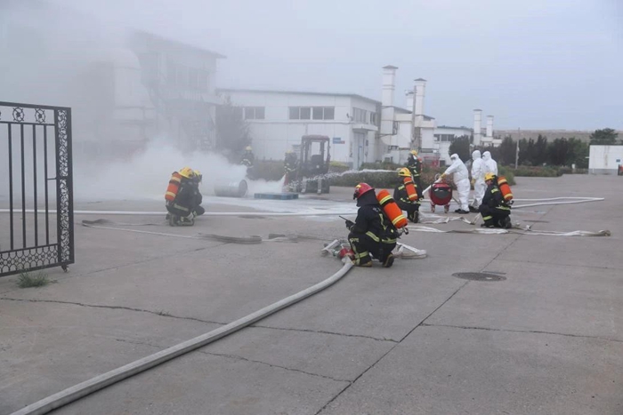 為進(jìn)一步筑牢安全生產(chǎn)防線,壓緊壓實(shí)安全生產(chǎn)責(zé)任, 6月底,華騰化工組織開展了2024年危險(xiǎn)化學(xué)品火災(zāi)事故應(yīng)急演練。此次演練模擬場(chǎng)景為危險(xiǎn)化學(xué)品庫(kù)房入庫(kù)作業(yè)時(shí)發(fā)生丙酮泄露著火,開展了火災(zāi)上報(bào)與先期處置、人員疏散逃生、微型消防站和消防救援隊(duì)滅火等環(huán)節(jié)的演練科目。