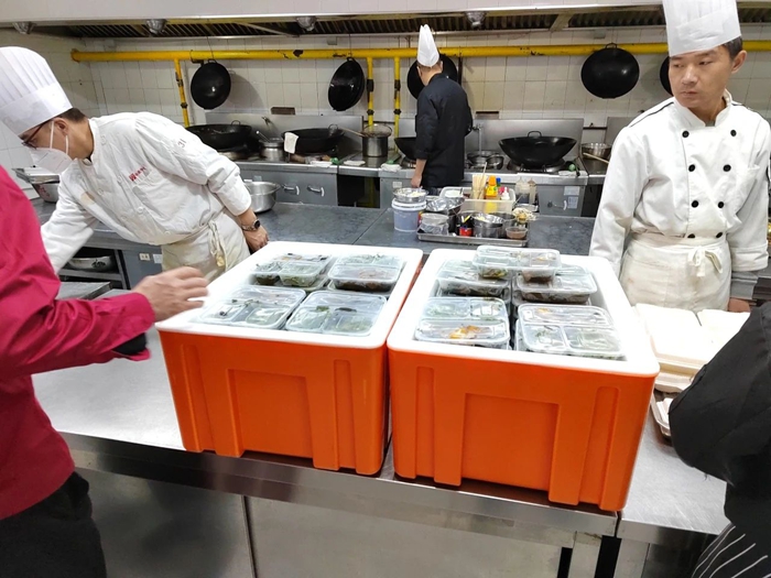 為此,賓館早在5月下旬就統(tǒng)籌協(xié)調(diào)廚師人員、配菜人員,并根據(jù)每日不同的菜譜,具體安排烹飪時間和順序。此外,賓館還對配送路上花費的時長進行具體測算,同時明確要求,辦公室和后勤人員要在保證安全衛(wèi)生的條件下,充實到分裝配送一線,最大限度確保每一份盒飯,在中午休息時第一時間送達到用餐人員手中。當(dāng)賓館的送餐人員將盒飯配送至比賽現(xiàn)場,看著賽事人員大口大口吃著冒著熱氣的飯菜時,內(nèi)心涌起無比的自豪和欣慰。