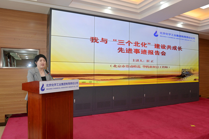 在先進(jìn)事跡報(bào)告環(huán)節(jié),市勞動(dòng)模范,華騰新材總工程師崔正攜《以使命為船,以熱愛為帆,在時(shí)代洪流中奮勇爭(zhēng)先》;市模范集體代表,試劑所總經(jīng)理助理、質(zhì)量檢驗(yàn)部部長(zhǎng)孟憲冬以《傳承工匠精神,助力“三個(gè)北化”,試劑所質(zhì)量檢驗(yàn)部的奮進(jìn)之路》為題,圍繞個(gè)人成長(zhǎng)、科研開發(fā)、團(tuán)隊(duì)建設(shè),自信講述與北京化工共同成長(zhǎng)的點(diǎn)點(diǎn)滴滴。