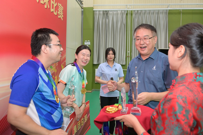 7月25日下午,在年中工作會(huì)剛剛閉幕之時(shí),“我與‘三個(gè)北化’建設(shè)共成長(zhǎng)”職工宣講比賽決賽暨先進(jìn)事跡報(bào)告會(huì),第五屆“北化杯”乒乓球比賽決賽在技師學(xué)院接力舉辦。北京化工集團(tuán)黨委書記、董事長(zhǎng)陳宇,黨委副書記吳瑞峰現(xiàn)場(chǎng)聆聽宣講和報(bào)告,觀看乒乓球比賽,為選手們加油鼓勁。