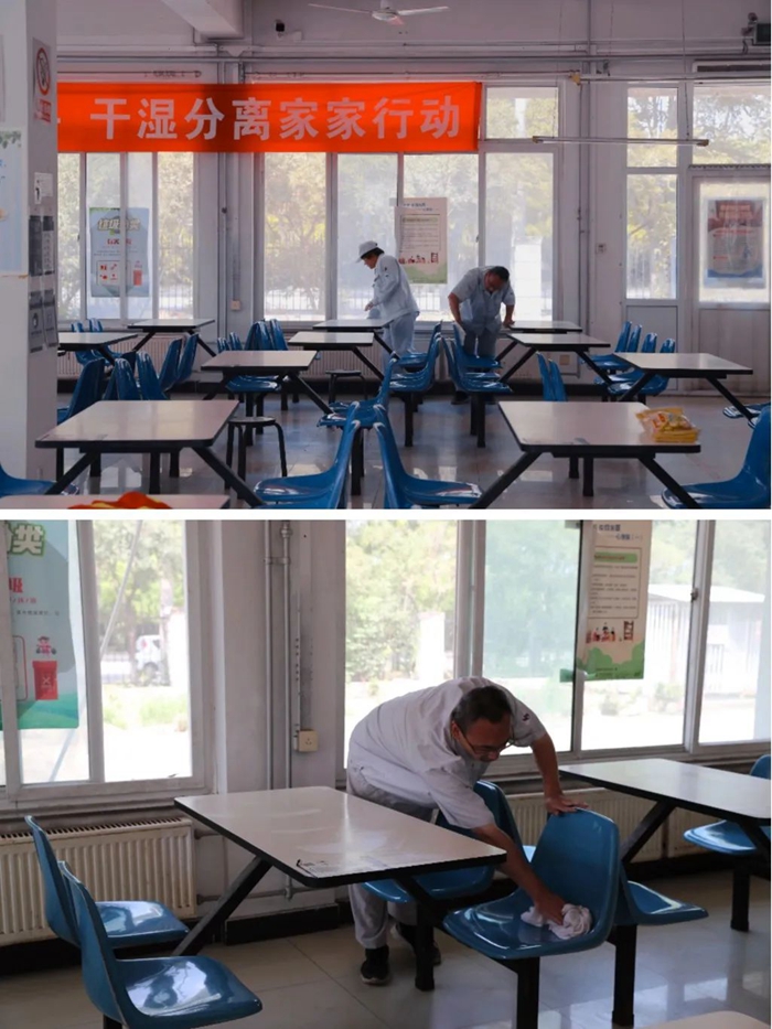 打掃完后,大家還對就餐環(huán)境進行了消毒,確保做到消殺“全覆蓋、無死角、無盲區(qū)”,為職工提供健康的就餐環(huán)境,全力保證全園職工的健康安全。