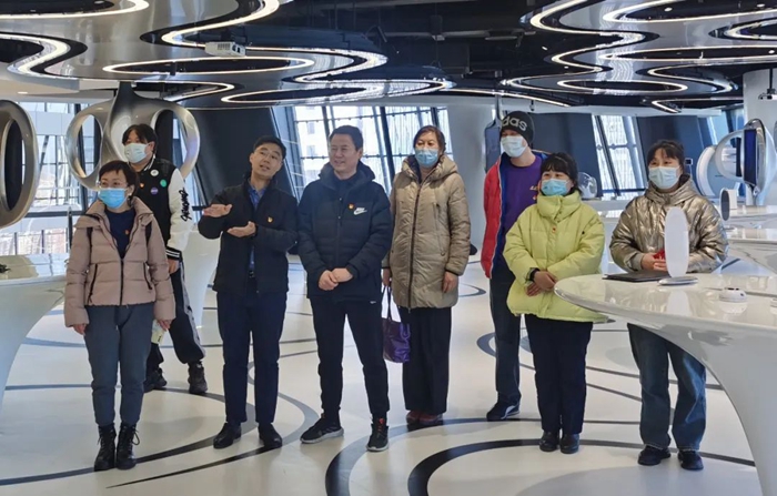 大家還依次參觀了大堂、5G實驗室、頂層云客廳等區(qū)域。通過實景展覽、5G情景模擬、現(xiàn)場解說等方式,深入了解麗澤SOHO的現(xiàn)代化、智能化。此外,大家還饒有興趣地參觀了5G實驗室的5G+智慧樓宇、5G+智能感知等五大類應(yīng)用場景。