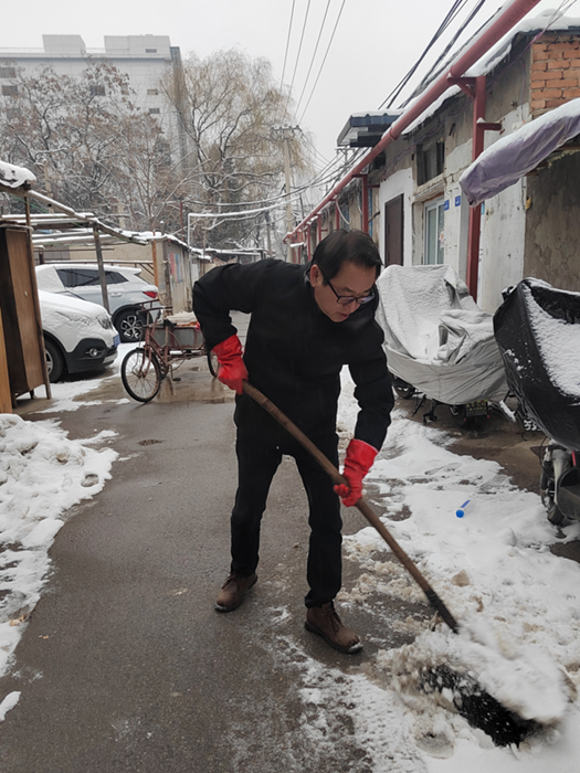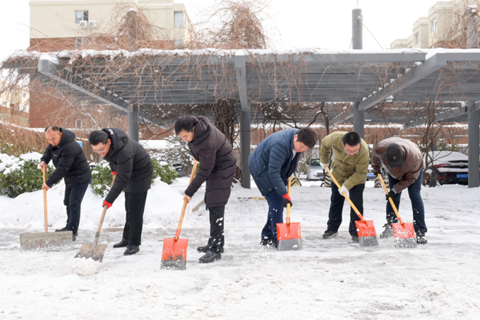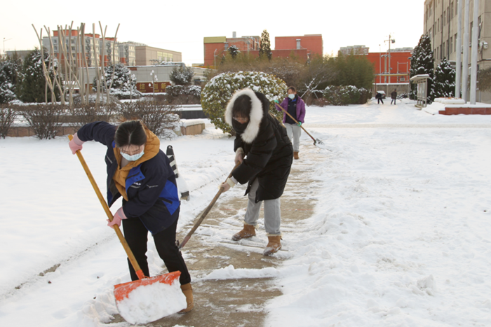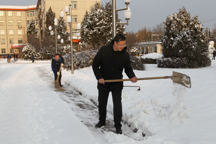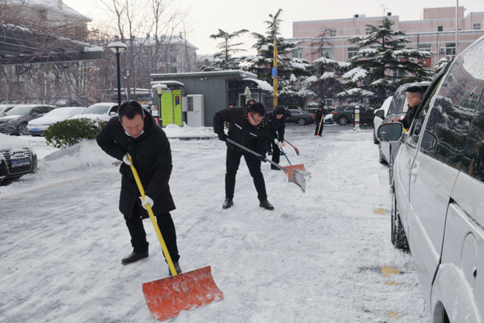 剛到單位的干部職工,紛紛拿起掃帚、鐵鍬,加入到掃雪除冰大“會(huì)戰(zhàn)”的隊(duì)伍中。大家齊心協(xié)力、現(xiàn)場(chǎng)一片熱火朝天,干凈整潔的道路很快清掃出來(lái),保證了干部職工出行安全。