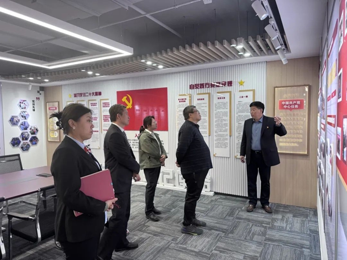 華騰大廈事業(yè)部黨支部的黨員同志們抱著潛心學(xué)習(xí)的心態(tài)走入海文大廈。大家首先參觀了海文大廈裝修改造后的房間、公共區(qū)域及服務(wù)配套場所。在參觀中,海文大廈負責(zé)人詳細介紹了大廈在黨建引領(lǐng)下的整體運營情況,重點講解了如何在日常經(jīng)營中充分發(fā)揮黨支部的戰(zhàn)斗堡壘作用和黨員的先鋒模范作用。