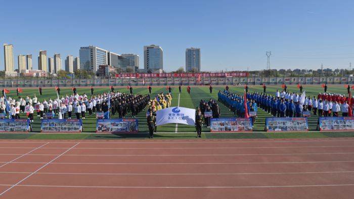 彩旗飄揚、步履鏗鏘。隨著檢閱式開始,國旗方陣、紅旗護衛(wèi)方陣、應急隊伍方陣、裁判員工作員方陣以及集團二級單位14支參賽代表隊方陣整齊列隊。伴著激昂的鼓聲和雄壯的樂曲聲,各代表隊精神抖擻、器宇軒昂,邁著雄健的步伐以昂揚的姿態(tài),挺胸抬頭、闊步向前,一聲聲震天的口號在主席臺前響起。北京化工人朝氣蓬勃、奮勇爭先的精神風貌震撼全場。