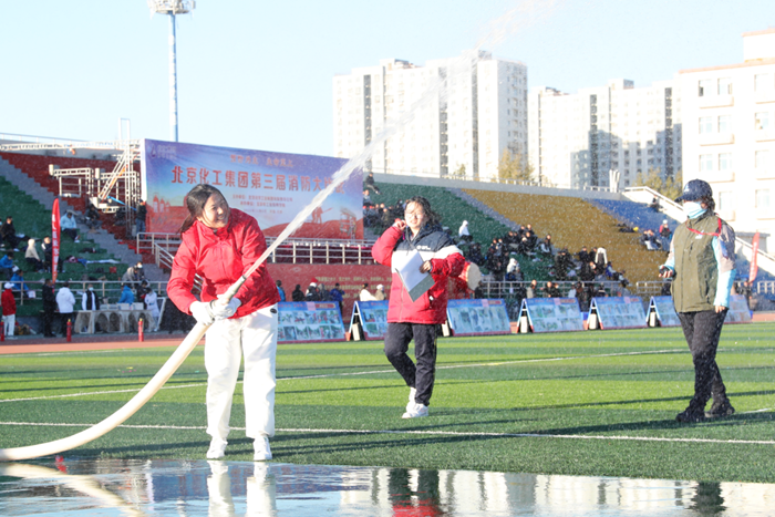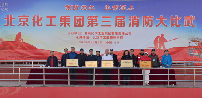 在全國第32個“119”消防宣傳日當天,北京化工集團第三屆消防大比武在技師學院舉辦,黨委書記、董事長陳宇致開幕詞,黨委副書記吳瑞峰主持開幕式并致閉幕詞,黨委常委、副總經理韓寶海主持閉幕式,來自全系統(tǒng)的350多名職工參加大比武。