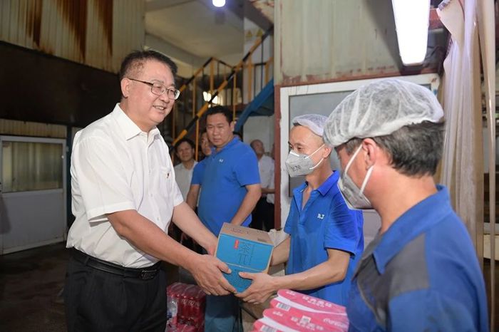 7月9日下午,北京化工集團(tuán)黨委書記、董事長(zhǎng)陳宇,黨委副書記吳瑞峰,黨委常委、副總經(jīng)理韓寶海,黨委常委、紀(jì)委書記常延輝來到華騰橡塑,進(jìn)車間、到班組,親手將一份份清涼飲品送到一線職工手中。慰問過程中,陳宇詳細(xì)了解一線職工工作生活情況,對(duì)大家冒著高溫酷暑,以高度的責(zé)任感和飽滿的工作熱情堅(jiān)守一線給予充分肯定。陳宇叮囑大家既要高質(zhì)量完成好本職工作,又要時(shí)刻關(guān)注身心健康,集團(tuán)各級(jí)黨組織和工會(huì)組織要從各方面確保防暑降溫工作落到實(shí)處,保證干部職工健康安全。