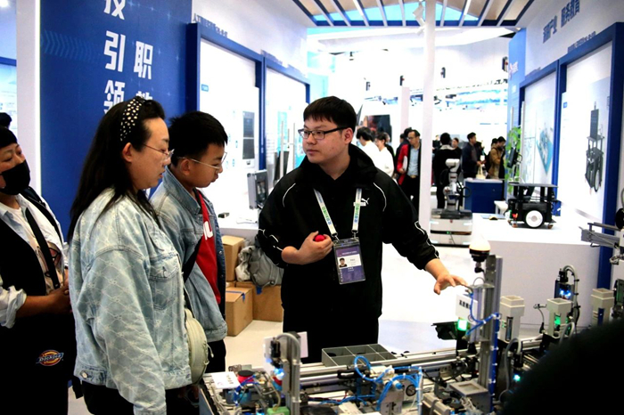 在展區(qū)現(xiàn)場(chǎng),技師學(xué)院自主培養(yǎng)的世界技能大賽金牌選手,結(jié)合自身成長(zhǎng)經(jīng)歷,向觀眾講述“技能成才技能報(bào)國(guó)故事”,展現(xiàn)了青年高技能人才傳承匠心、為國(guó)爭(zhēng)光的卓越風(fēng)采。